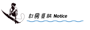 進房時間:當日下午15:00以後;退房時間隔日上午11:00以前~北堤衝浪店櫃檯辦理。 |